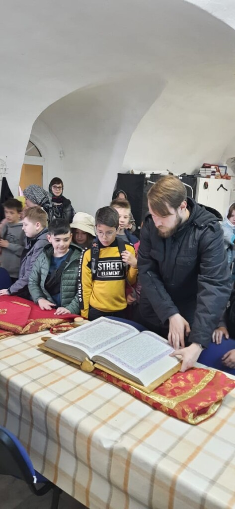26 мая клирик Михаило-Архангельского Собора города Бронницы чтец Даниил Ганьшин провёл экскурсию для учащихся 4-го класса Гимназии города Бронницы, где рассказал детям о истории соборного комплекса и церковном богослужении, а в конце экскурсии ответил на интересующие детей вопросы.