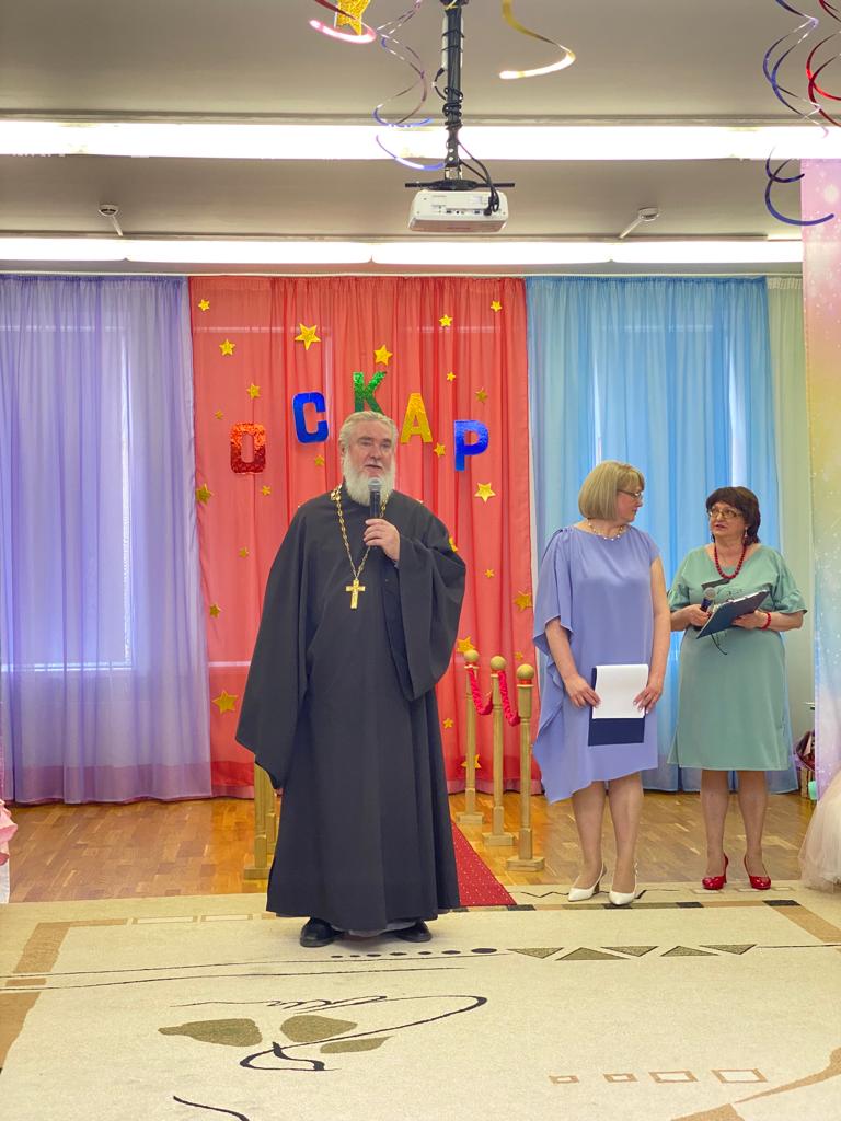 25 мая в детском саду «Сказка» прошли торжества в честь выпуска воспитанников в 1-й класс. На мероприятии присутствовал клирик Михаило-Архангельского Собора города Бронницы протоиерей Геннадий Ханыкин.