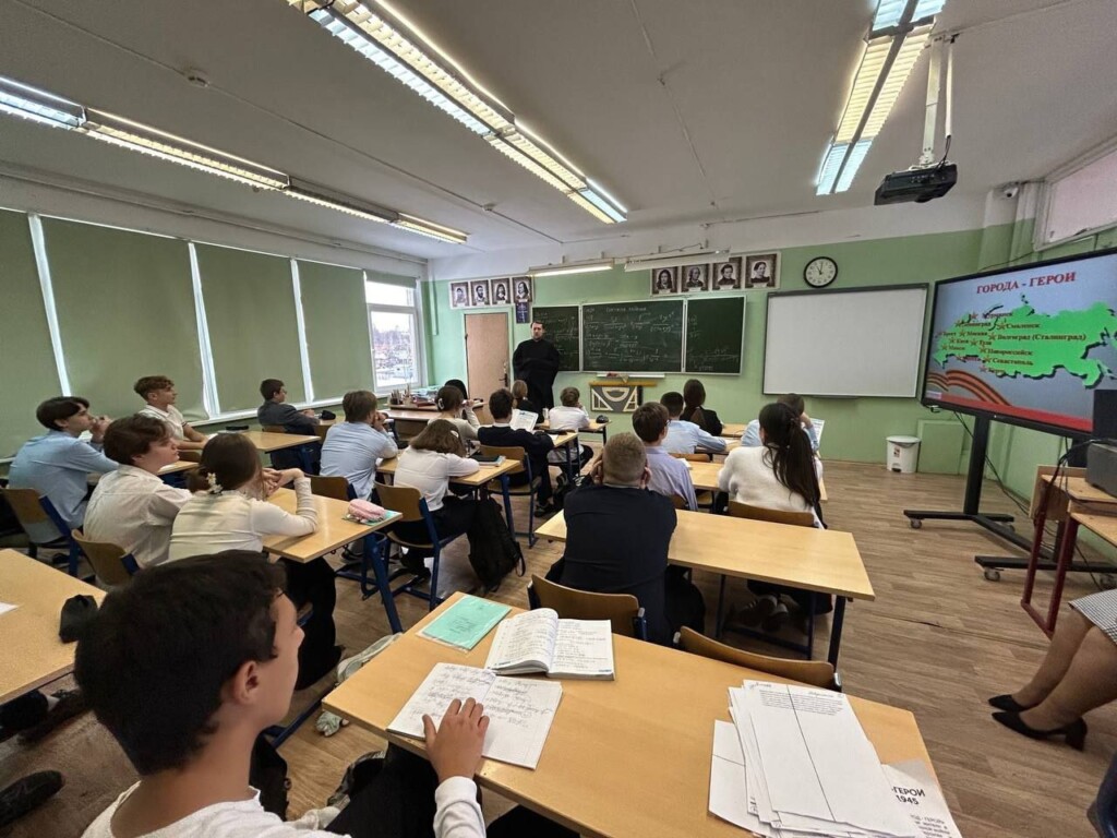 В преддверии 80-летия Великой Победы открытый урок на тему «Города-герои и их известные и неизвестные защитники!» подготовили учащиеся 8 «А» класса.