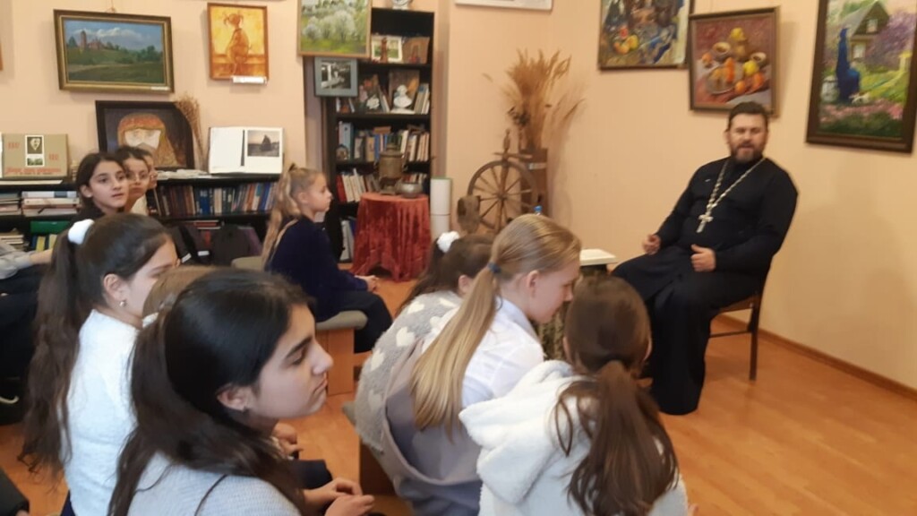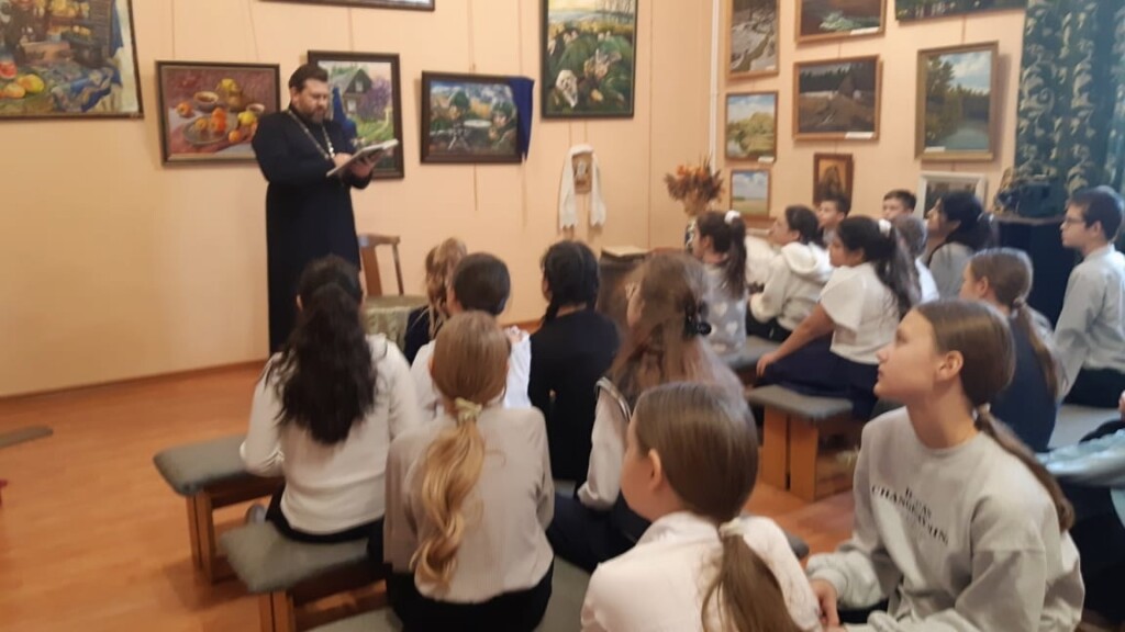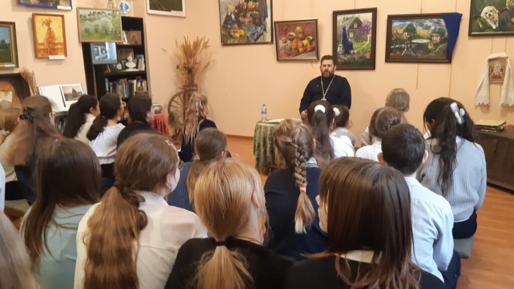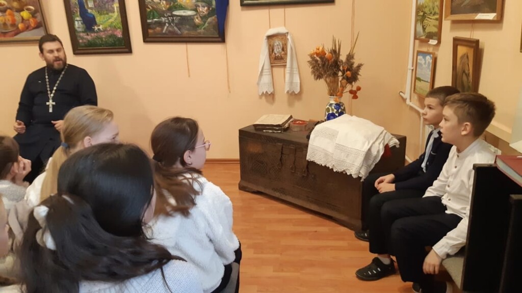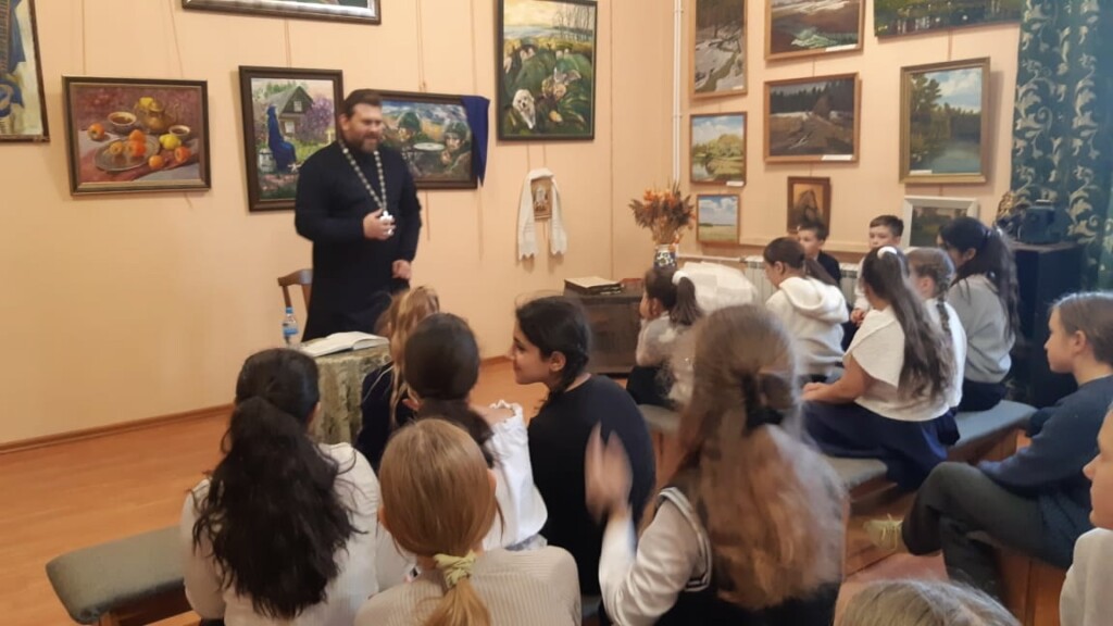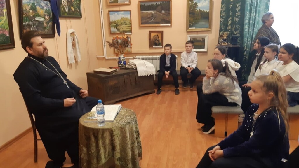 18 декабря ответственный по образованию в 1-м Бронницком благочинии, настоятель Никитского храма с. Софьино иерей Александр Ионов в помещении школьного музея Софьинской средней общеобразовательной школы Раменского г.о. провёл беседу о евангельских притчах с учащимися 5 классов. Встреча была организована учителем русского языка и литературы Александрой Алексеевной Тихоновой и учителем музыки Ириной Александровной Пархомчук.