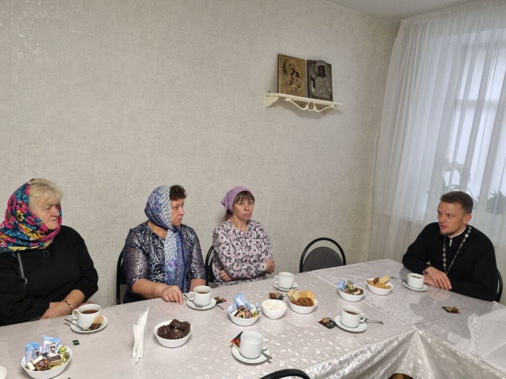 После литии в трапезной состоялась беседа за чашкой чая. Отец Сергий рассказал об истории и значении праздника Крестовоздвижения, ответил на вопросы присутствующих.