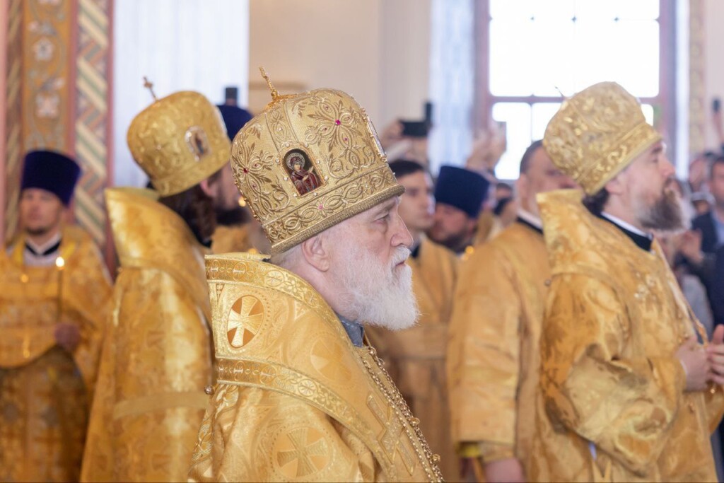 По завершении Литургии митрополит Павел приветствовал Святейшего Владыку и преподнес Его Святейшеству икону Пресвятой Богородицы «Знамение», а также букет белых роз.