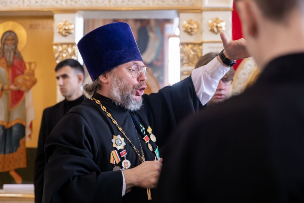 Проповедь перед причастием произнес протоиерей Георгий Муравлев, благочинный 2-го Коломенского церковного округа, настоятель Илиинского храма в г. Коломне и Успенского храма в с. Мячково городского округа Коломна.