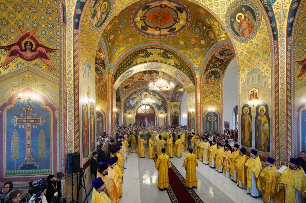На сугубой ектении были вознесены особые прошения, Предстоятель Русской Православной Церкви прочитал молитву о Святой Руси.