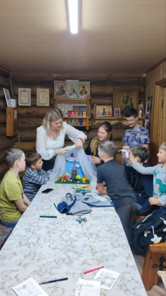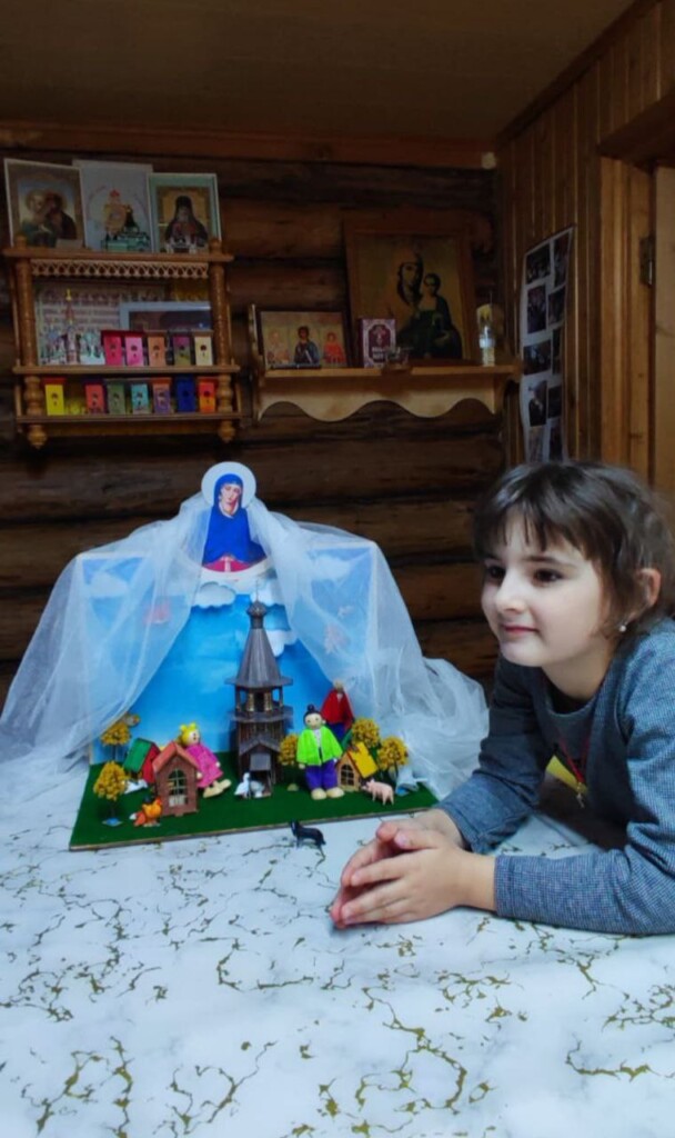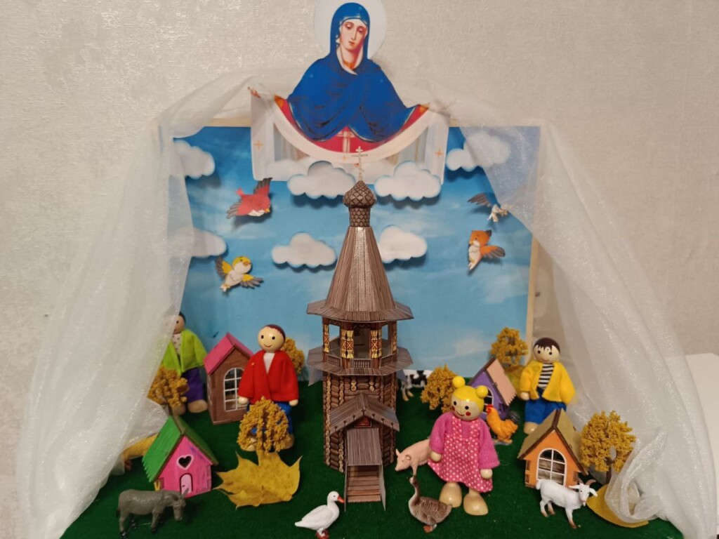 Завершилось занятие творчески. Дети совместно с преподавателем смастерили подделку, демонстрирующую как Покров Богородицы покрывает и нас сейчас.