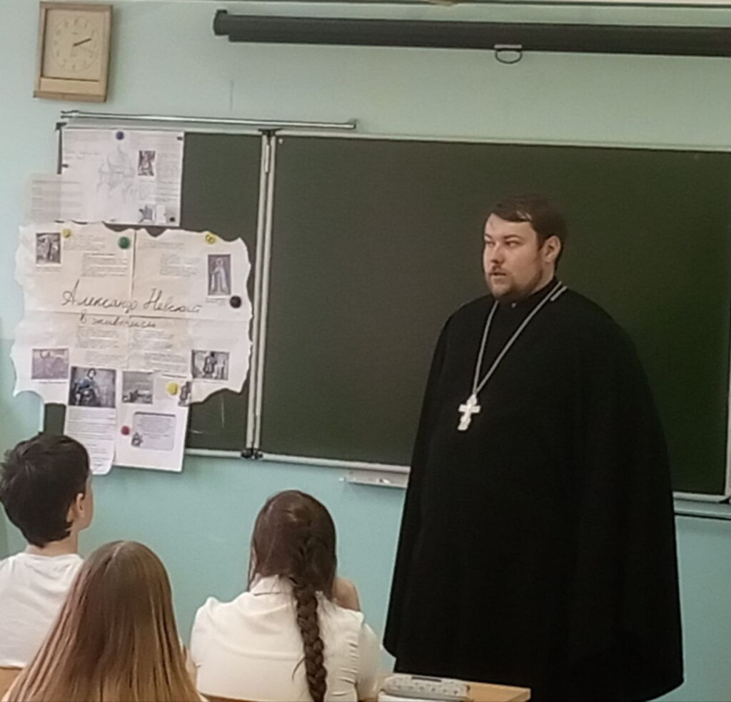 13 октября, в рамках недели духовно-нравственной культуры, в 8г классе Гимназии им. А.А. Пушкина прошла встреча с клириком Михаило-Архангельского собора г. Бронницы иереем Даниилом Ганьшиным.