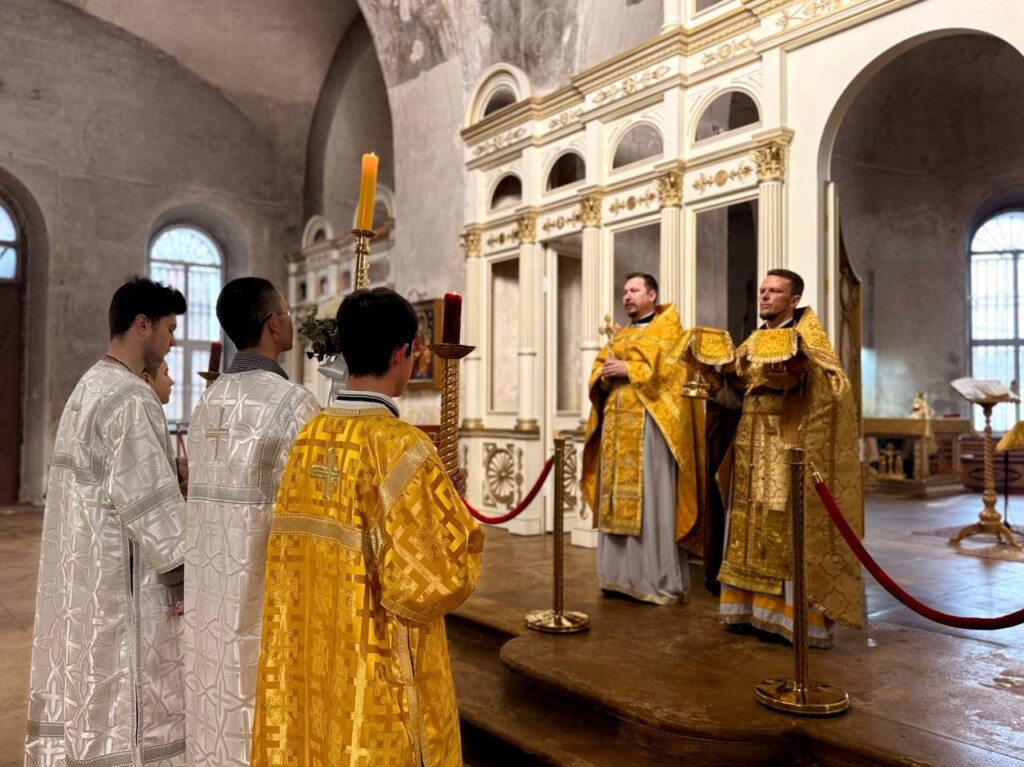 Неделя 19-я по Пятидесятнице. День памяти апостола Фомы. Божественная литургия в Иерусалимском храме г. Бронницы. После богослужения настоятель собора иерей Сергий Себелев поздравил сотрудников с днём рождения.