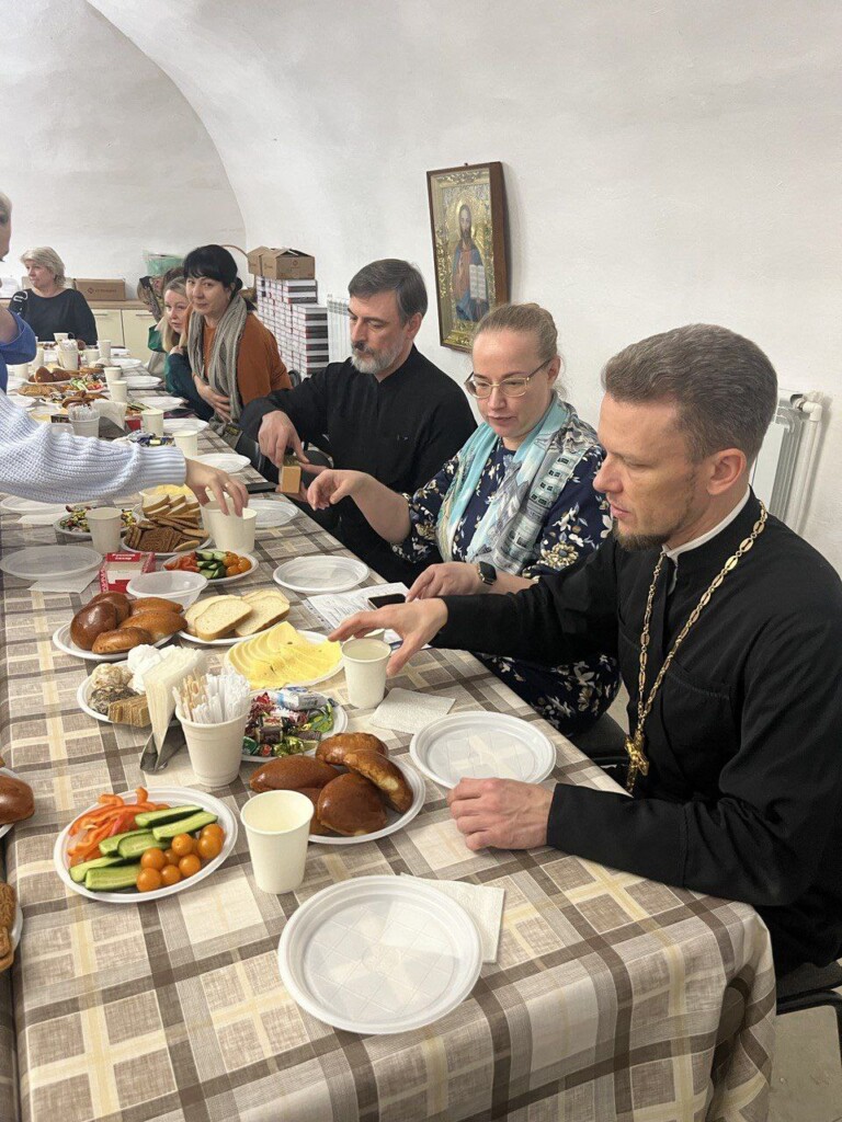 После молебна в подклети собора состоялся традиционный круглый стол, во время которого за чашкой чая представители духовенства и педагогической общественности обсудили организационные вопросы мероприятий предстоящих чтений.