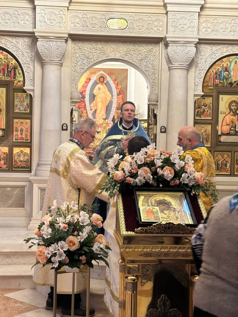 После Литургии было совершено славление перед Казанской иконой и иконой новомученика.