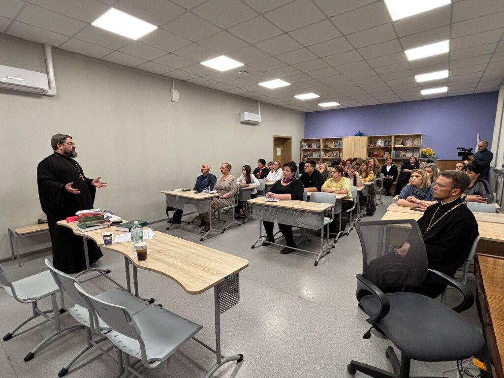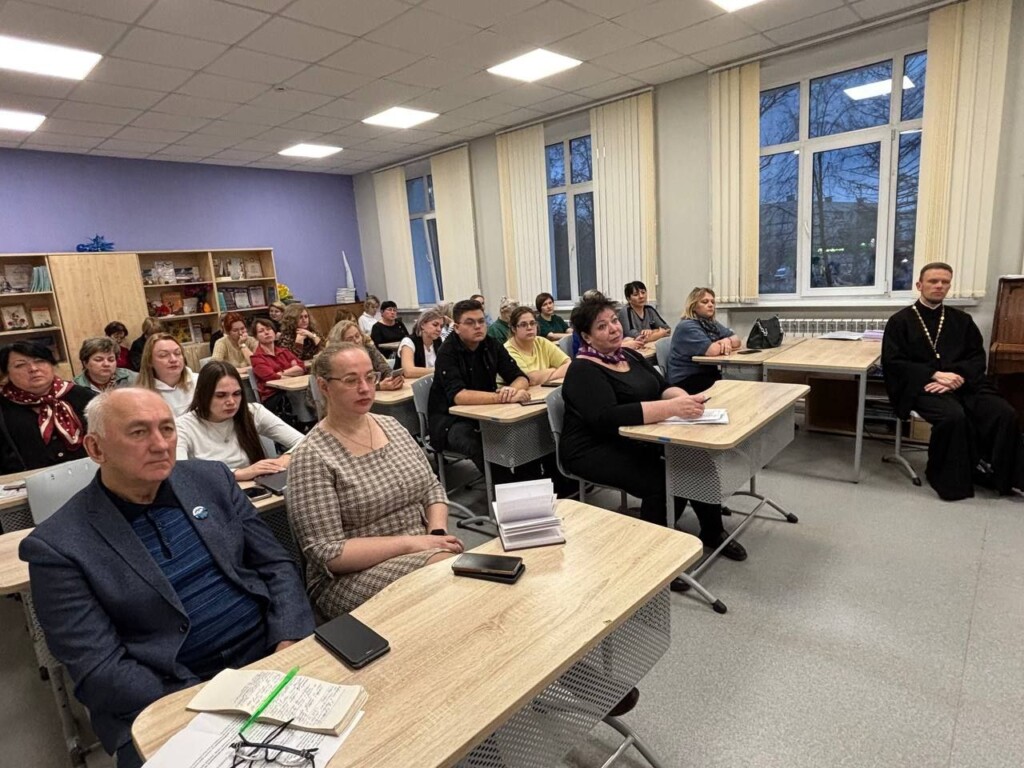 11 ноября в Лицее г. Бронницы состоялась встреча представителей педагогической общественности округа с историком-архивистом и источниковедом, кандидатом исторических наук и богословия, доцентом кафедры теологии Московского государственного лингвистического университета иереем Димитрием Сафоновым на тему «Уроки святителя Тихона, Патриарха Всероссийского (к 100-летию со дня преставления главы Собора новомучеников и исповедников Церкви Русской)».