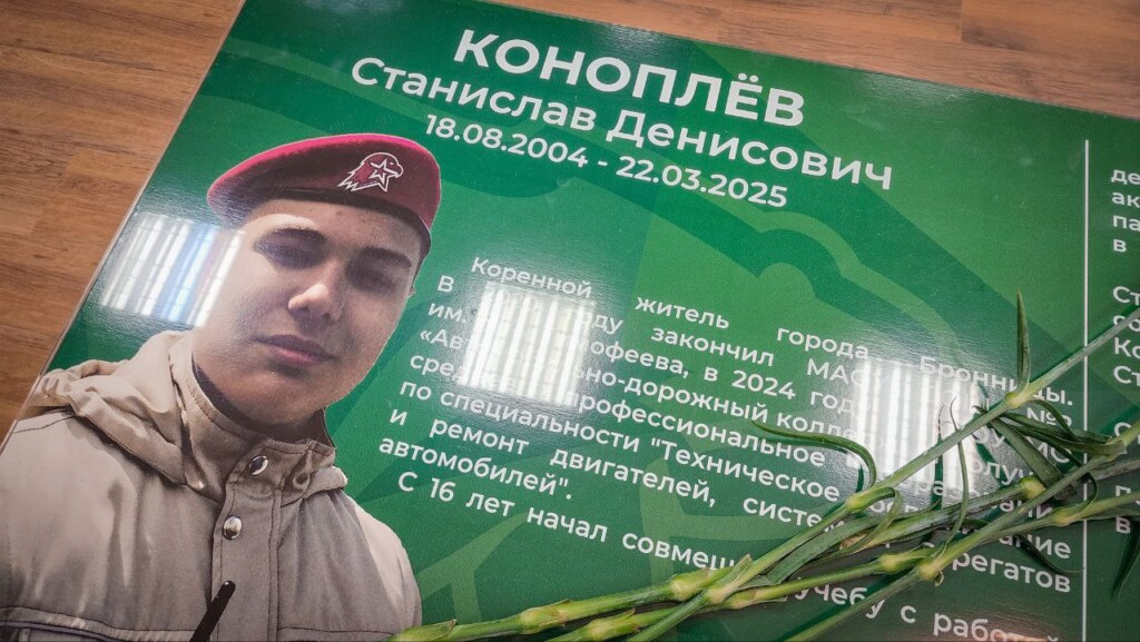 8 декабря в Средней общеобразовательной школе № 2 им. Героя Советского Союза Н.А. Тимофеева г.о. Бронницы состоялось открытие «Парты Героя» и мемориальной доски в память о погибшем 22 марта 2025 г. участнике СВО Станиславе Денисовиче Коноплёве.