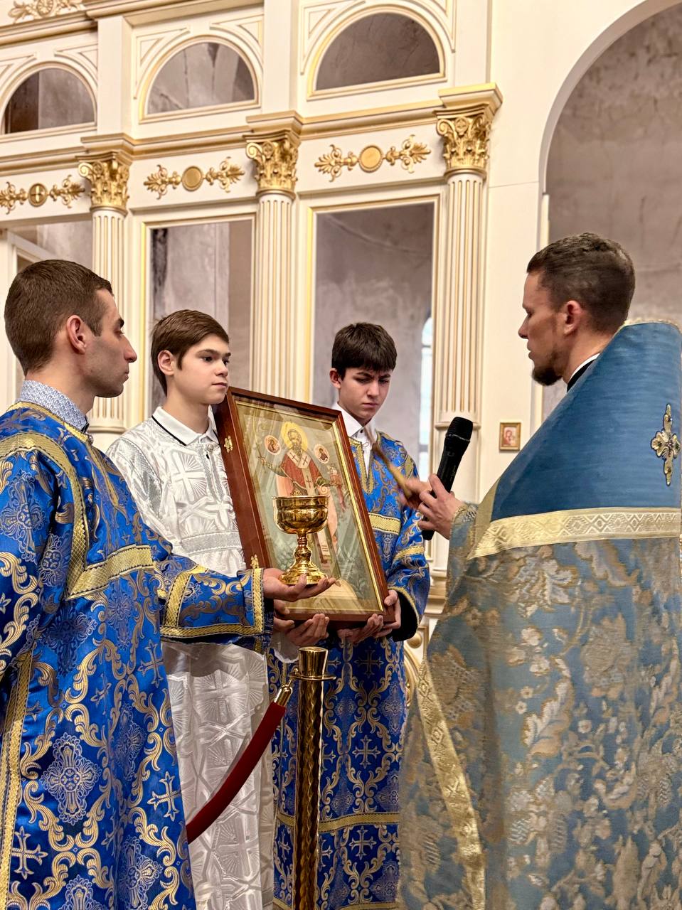 Божественная Литургия в праздник Введения во храм Пресвятой Владычицы нашей Богородицы и Приснодевы Марии в Иерусалисмком храме г. Бронницы. По окончании Литургии было совершено славление с чтением молитвы перед иконой празника, а так же освящение новой иконы «Никола Можайский».