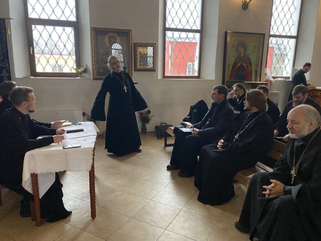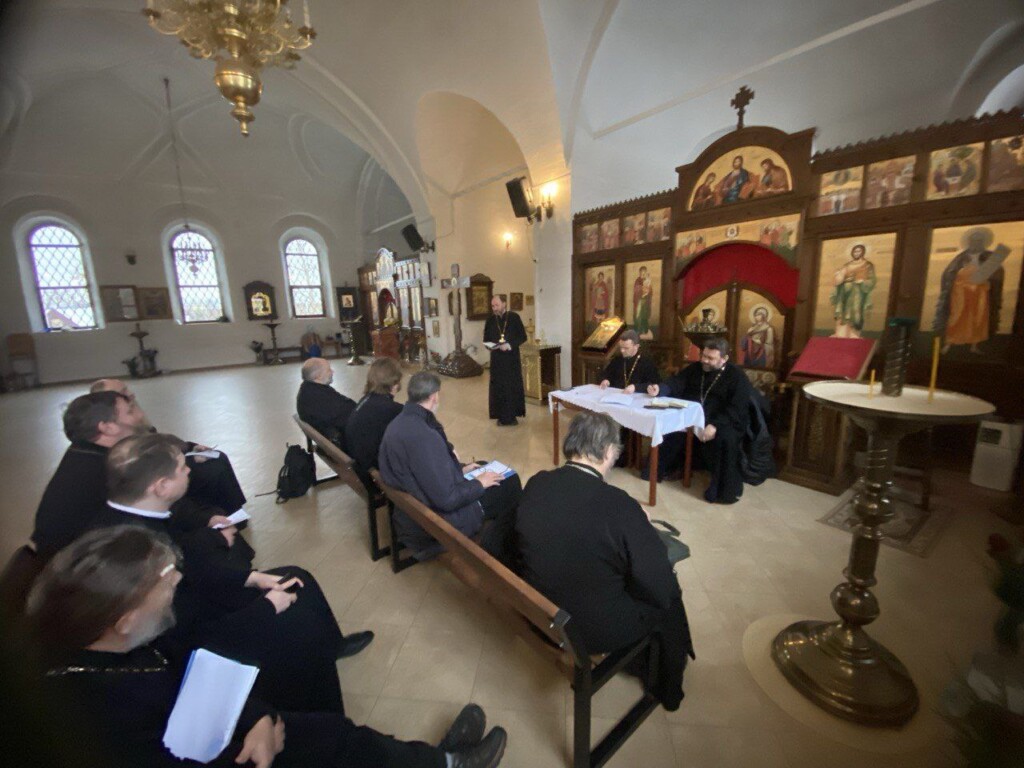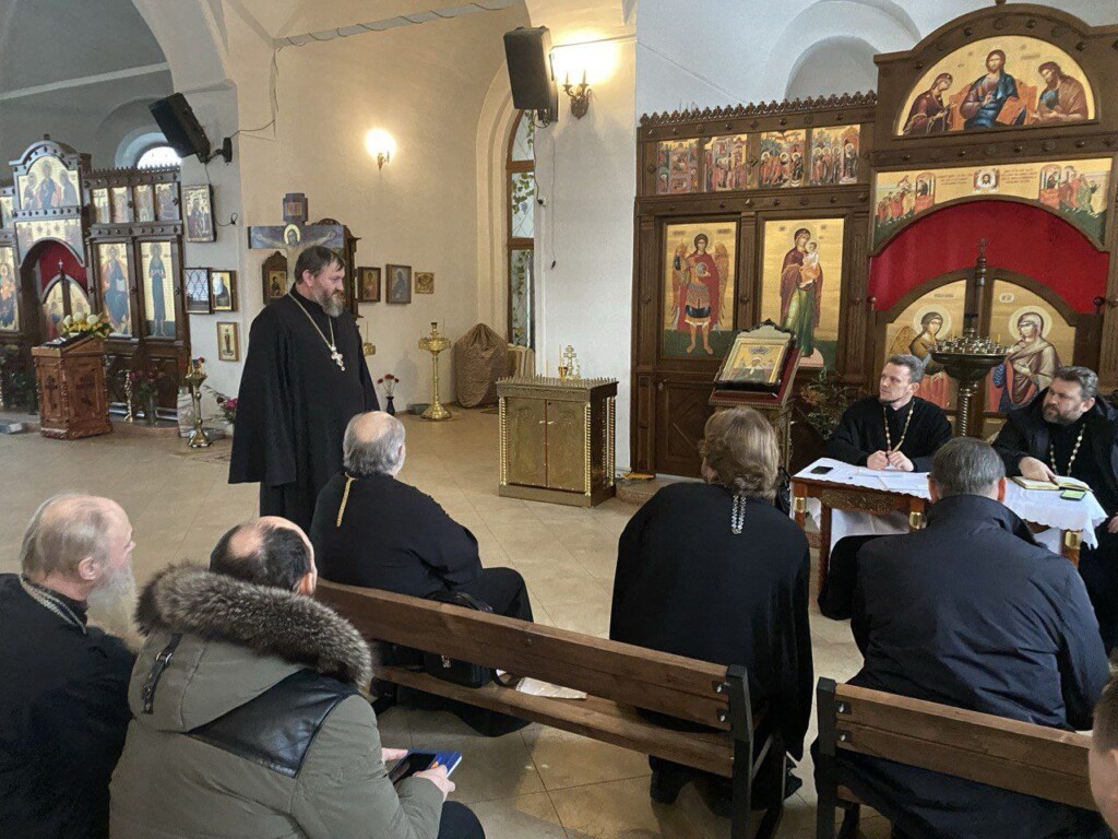 25 декабря в Успенском храме г. Бронницы состоялось ежеквартальное братское совещание духовенства 1-го Бронницкого благочиннического округа. На собрании обсуждались вопросы миссионерской, просветительской и хозяйственной деятельности приходов, оформления документации и отчётности, проведения мероприятий благочиния. Благочинный иерей Сергий Себелев довёл до сведения собравшихся поступившие из Коломенского епархиального управления циркуляры и распоряжения. Также были выслушаны сообщения ответственных по экологической работе, семье и материнству, взаимодействию с казачеством и Вооруженными силами.