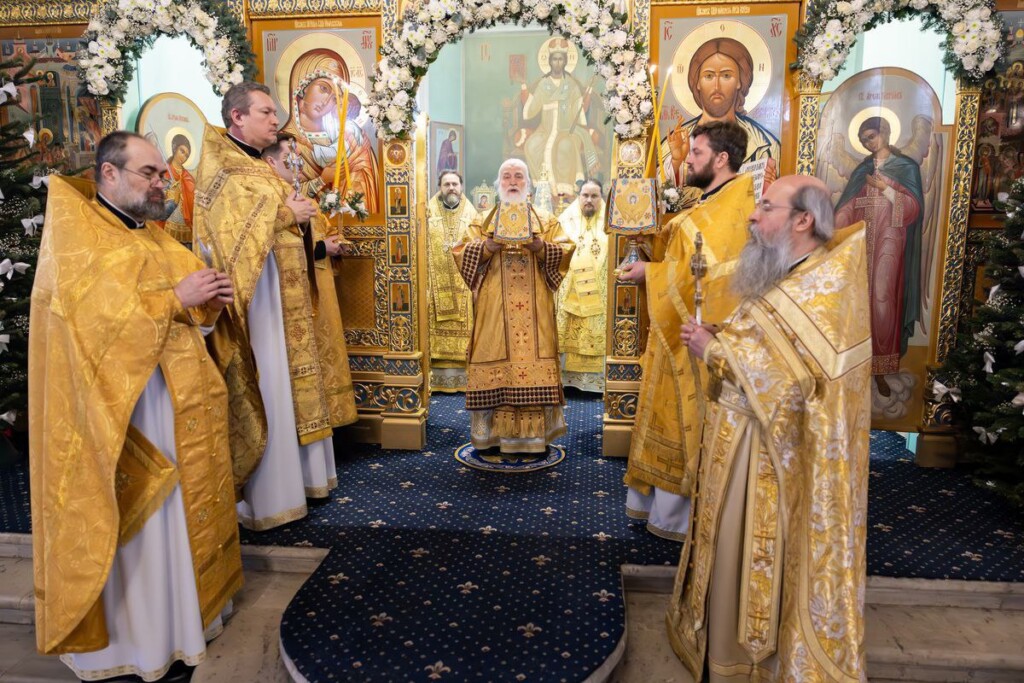 В завершении богослужения было совершено славление праздника, после чего от лица духовенства Московской митрополии архиепископ Фома поздравил митрополита Павла с праздником Рождества Христова, а затем владыка Павел поблагодарил архипастырей Московской митрополии за соборное служение, обратился к духовенству и молящимся с архипастырским словом.