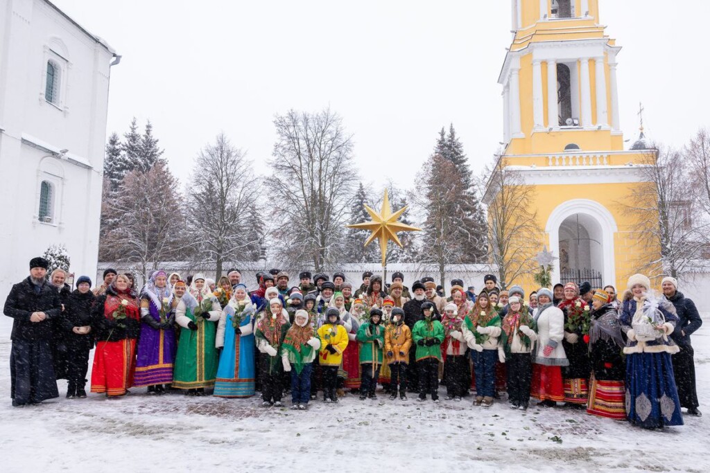 По окончании литургии у входа в Тихвинский храм собрались воспитанники воскресных школ города Коломны, чтобы получить благословение у митрополита Крутицкого и Коломенского на славление Рождённого Христа Спасителя торжественным шествием по Коломенскому Кремлю.