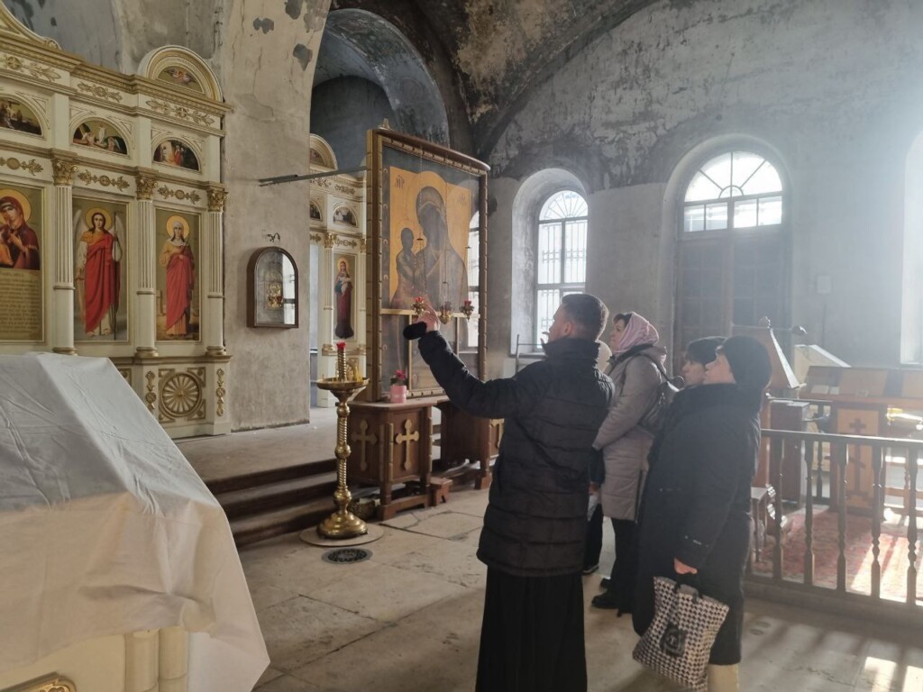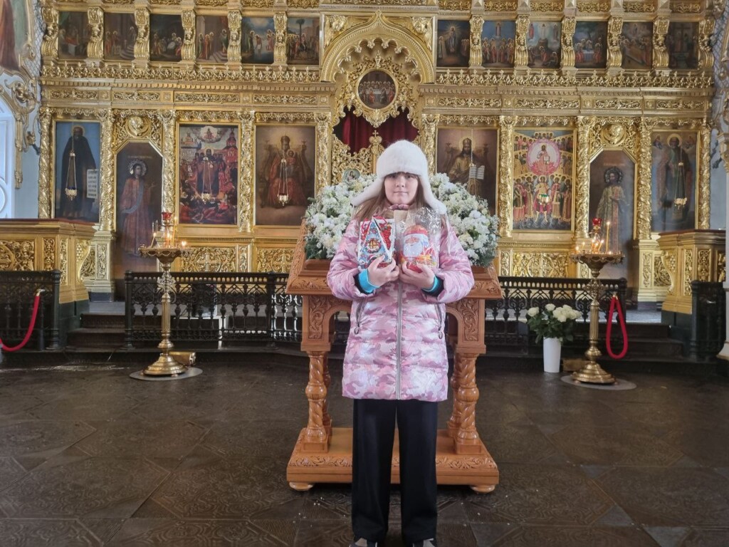 Затем отец Сергий показал новый иконостас в храме Иерусалимской иконы Божией Матери, рассказал о планах по реставрации росписи в этом храме. Завершилась встреча беседой с чаепитием и ответом на вопросы присутствовавших. Детям вручили сладкие подарки.