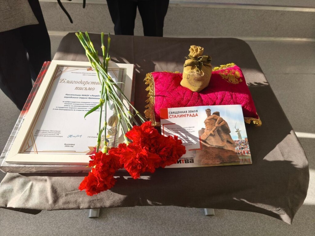 2 февраля в Лицее г. Бронницы прошло торжественное мероприятие, посвящённое легендарной Сталинградской битве. На мероприятии была представлена литературно-музыкальная композиция «Это нашей истории строки. Ты в памяти и в сердце, Сталинград!». Центральным моментом стала торжественная передача земли с Мамаева Кургана.