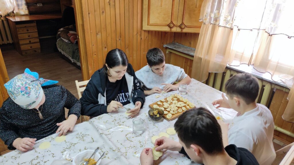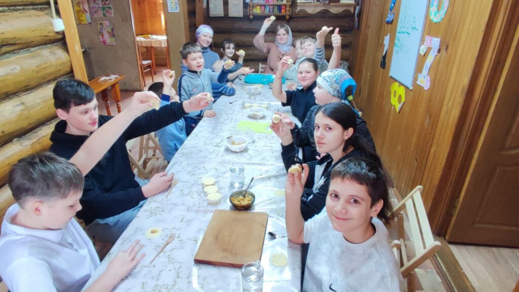 Большой и дружной компанией будущая молодежь готовила традиционное блюдо русской кухни.