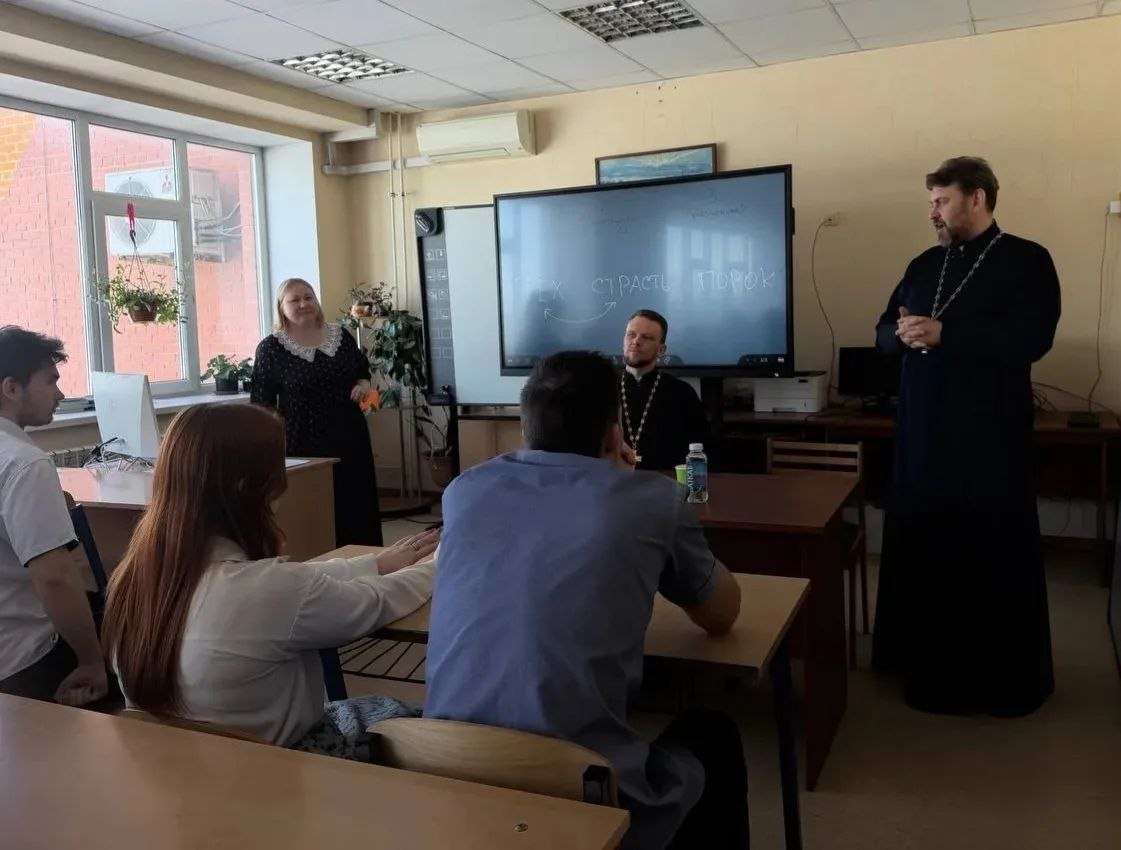 На встрече, организованной учителем литературы Марией Юрьевной Чекалдиной, присутствовали благочинный 1-го Бронницкого округа иерей Сергий Себелев и ответственный за образование в 1-м Бронницком благочинническом округе иерей Александр Ионов.