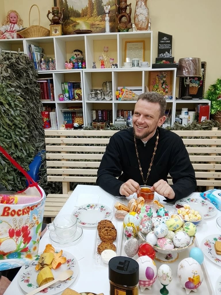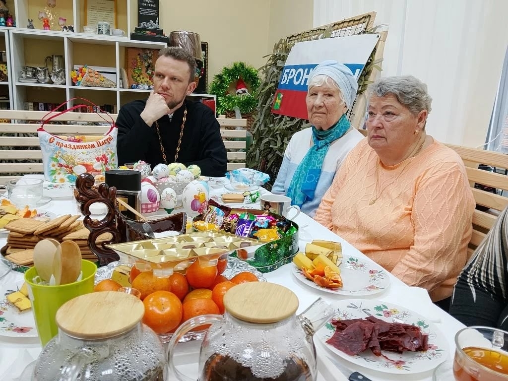 Встреча прошла в преддверии праздника Пасхи Христовой. Отец Сергий рассказал о значении праздника и ответил на вопросы участников беседы.