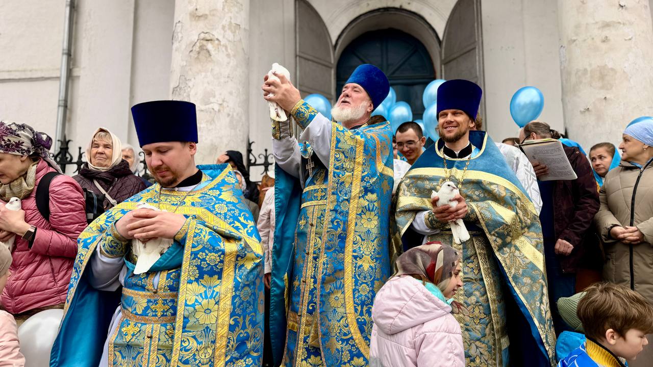 По традиции праздника Благовещения, после Литургии были выпущены в небо белые голуби