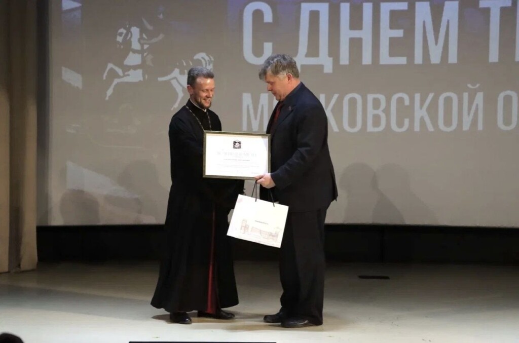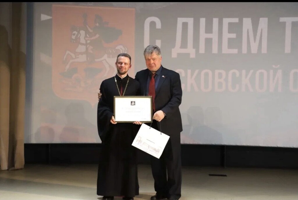 17 апреля в КДЦ «Бронницы» состоялось торжественное мероприятие , посвященное Празднику труда Подмосковья. В мероприятии принял участие благочинный 1-го Бронницкого благочиния иерей Сергий Себелев, который был награжден Почетной грамотой Московской областной думы.