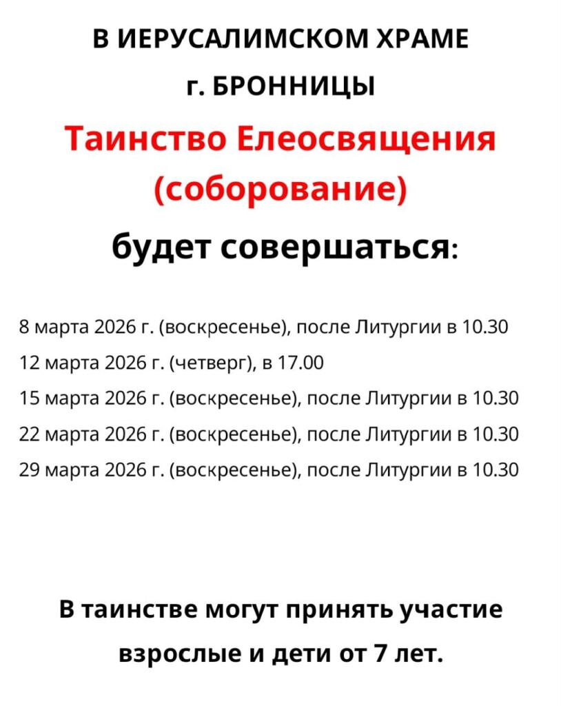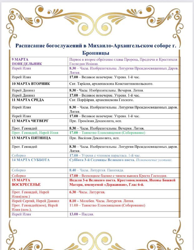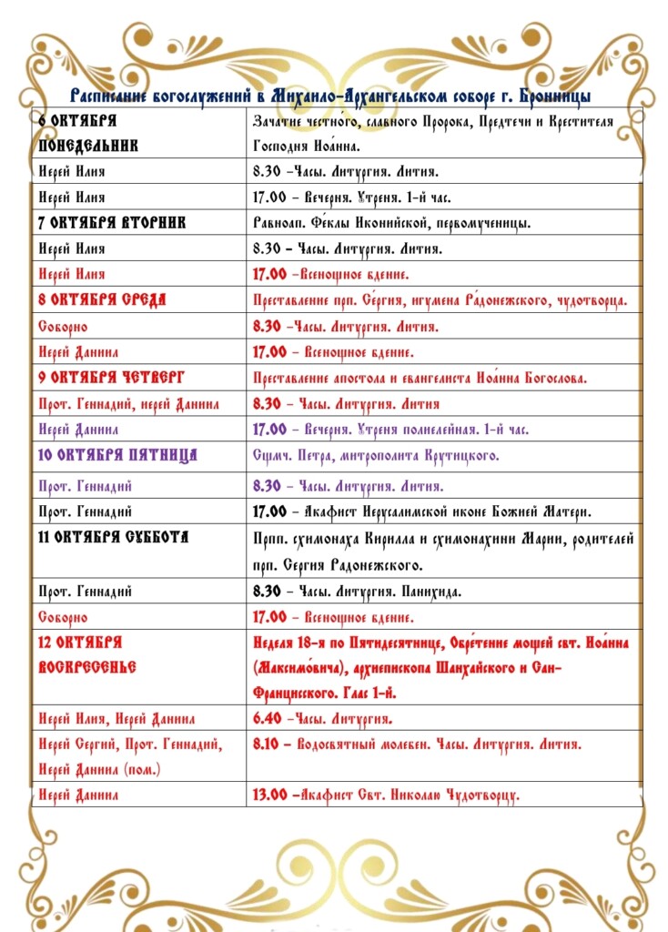 Расписание богослужений