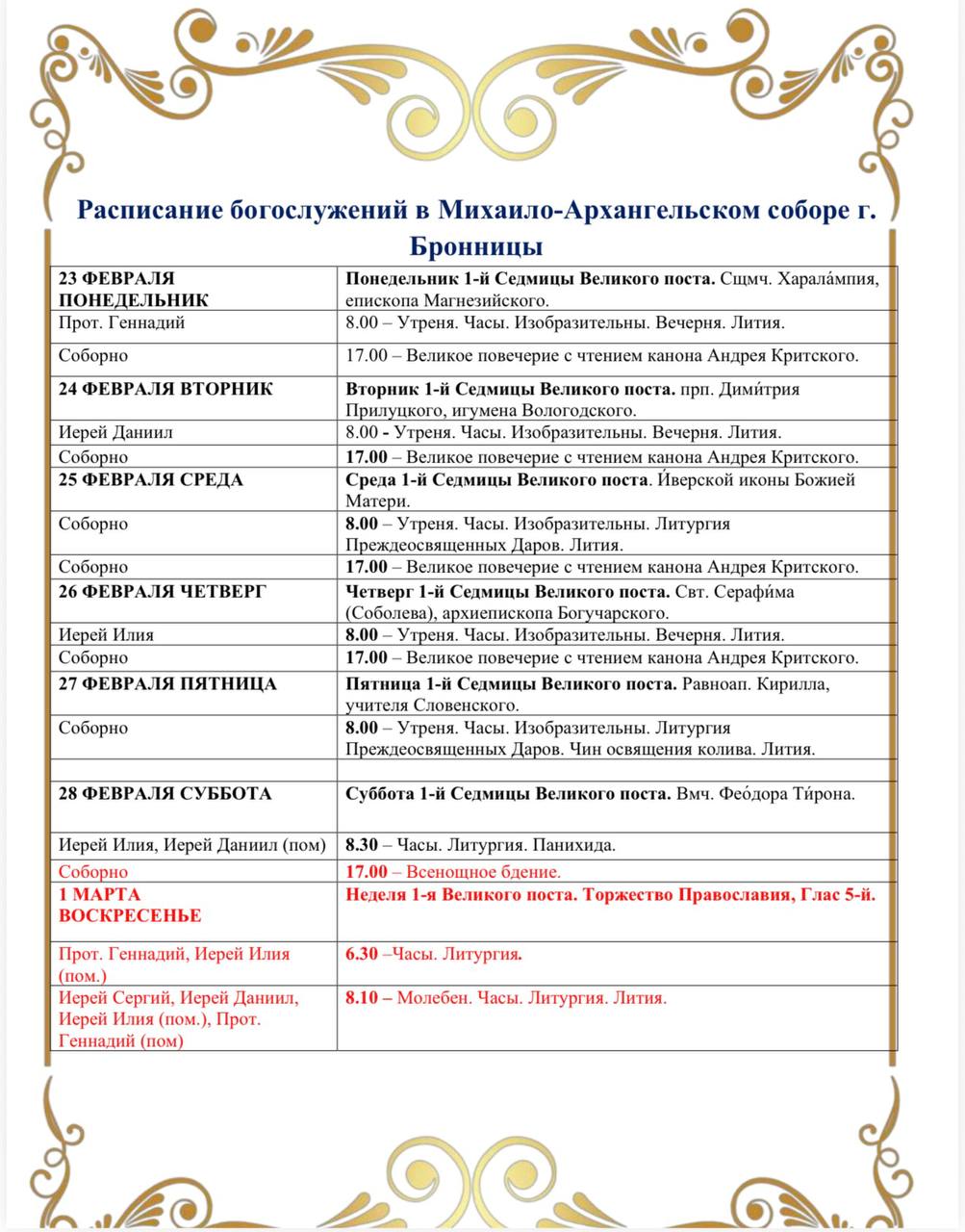 23 февраля 202610 февраля 2026 (по ст.ст.)ПонедельникСедмица 38-я по ПятидесятницеИкона Богородицы «Огневидная»Икона Богородицы «Агиосорити́сса» («Халкопратийская», «Святорачица», «Эдесская», «Едесская») Священномученик Харалампий, епископ Магнезийский, мученики Порфирий и ВаптосМученицы Еннафа, Валентина и ПавлаСвященномученик Петр Грудинский, пресвитерСвященномученик Валериан Новицкий, пресвитерБлаговерная княгиня Анна НовгородскаяПреподобный Прохор Печерский, ЛебедникПреподобный Лонгин Коряжемский, иеромонахПраведная ГалинаСвященномученик Константин Верецкий, пресвитерПреподобный Шио (Симеон) МгвимскийМученица Валентина Кесарийская (Палестинская), деваМученик Ваптос Антиохийский (Писидийский)Преподобный Герман БелозерскийМученица Еннафа Газская, деваМученица Павла Кесарийская (Палестинская), деваМученик Порфирий Антиохийский (Писидийский)Мученик Феоктист Антиохийский (Писидийский)Священномученик Харалампий Магнезийский, епископПреподобный Рафаил Святогорский Преподобный Иоанникий Святогорский